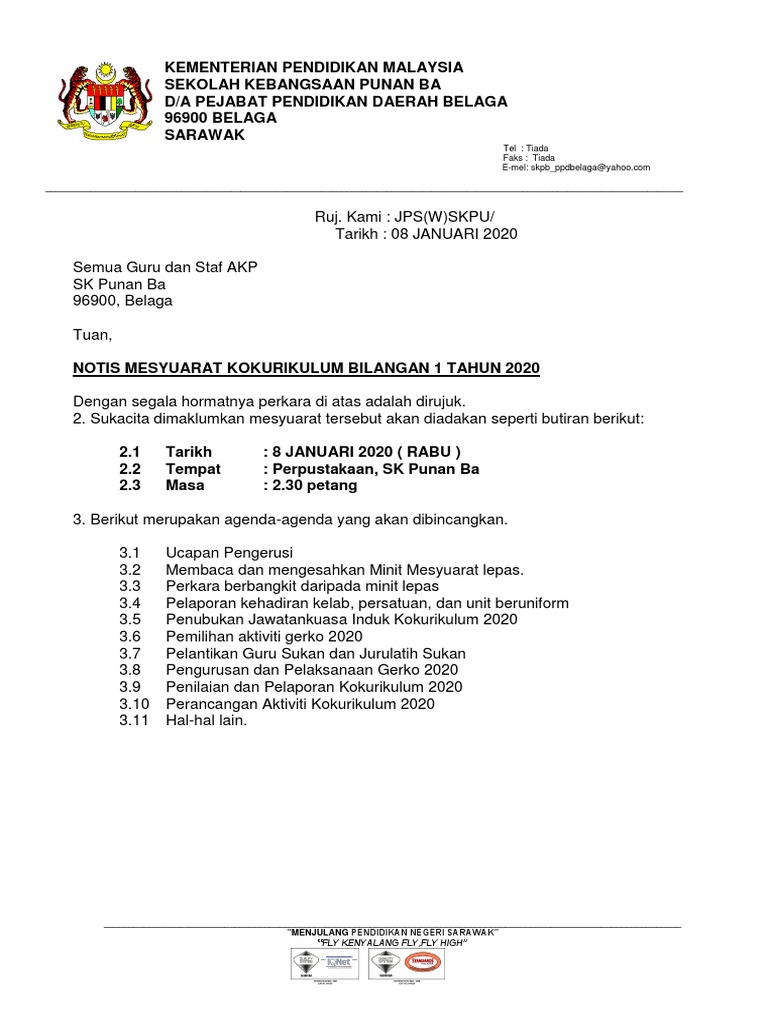 Surat Panggilan Mesyuarat Kokurikulum 2020 Pdf
